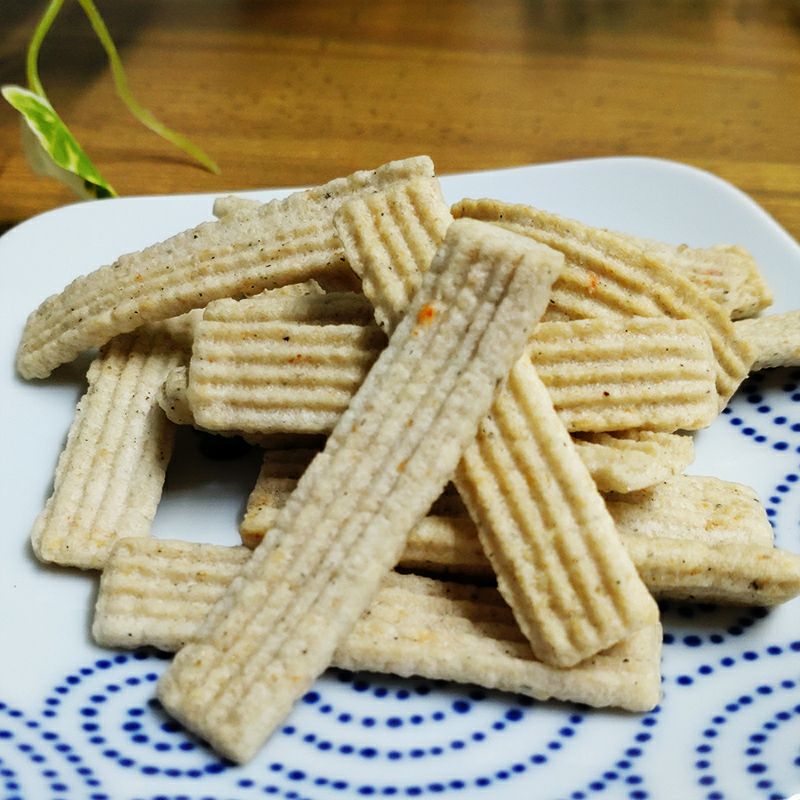 魚のすり身とたっぷりの殻ごとのえびを使用した、カリッとしたかための食感が特長のお魚スナックです。