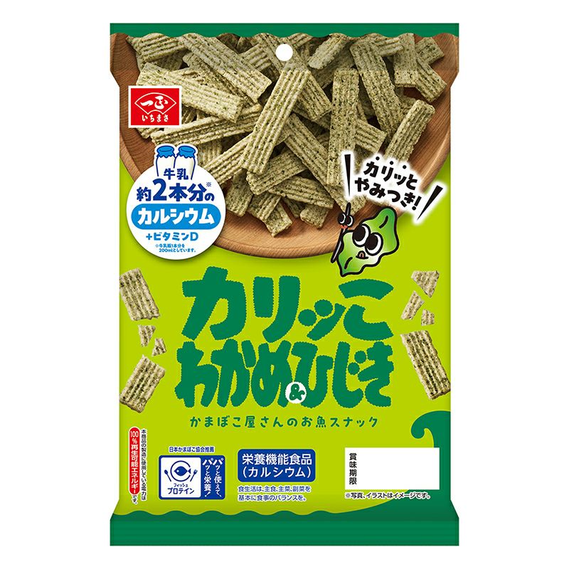 魚のすり身に海藻(わかめ&ひじき)を加えた、カリッとしたかための食感が特長のお魚スナックです。