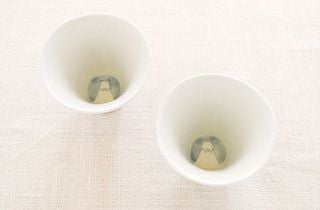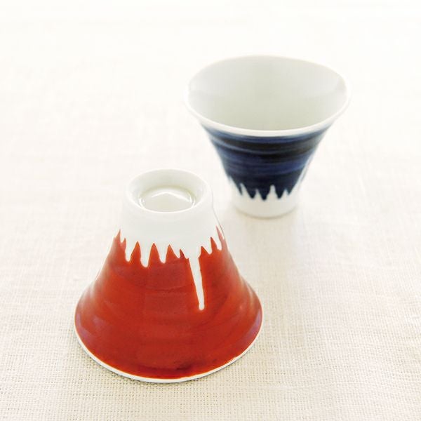 「夕日に照る赤富士」と「湖に映し出される逆さ富士」をモチーフに創りあげた有田焼のペアぐい呑です。